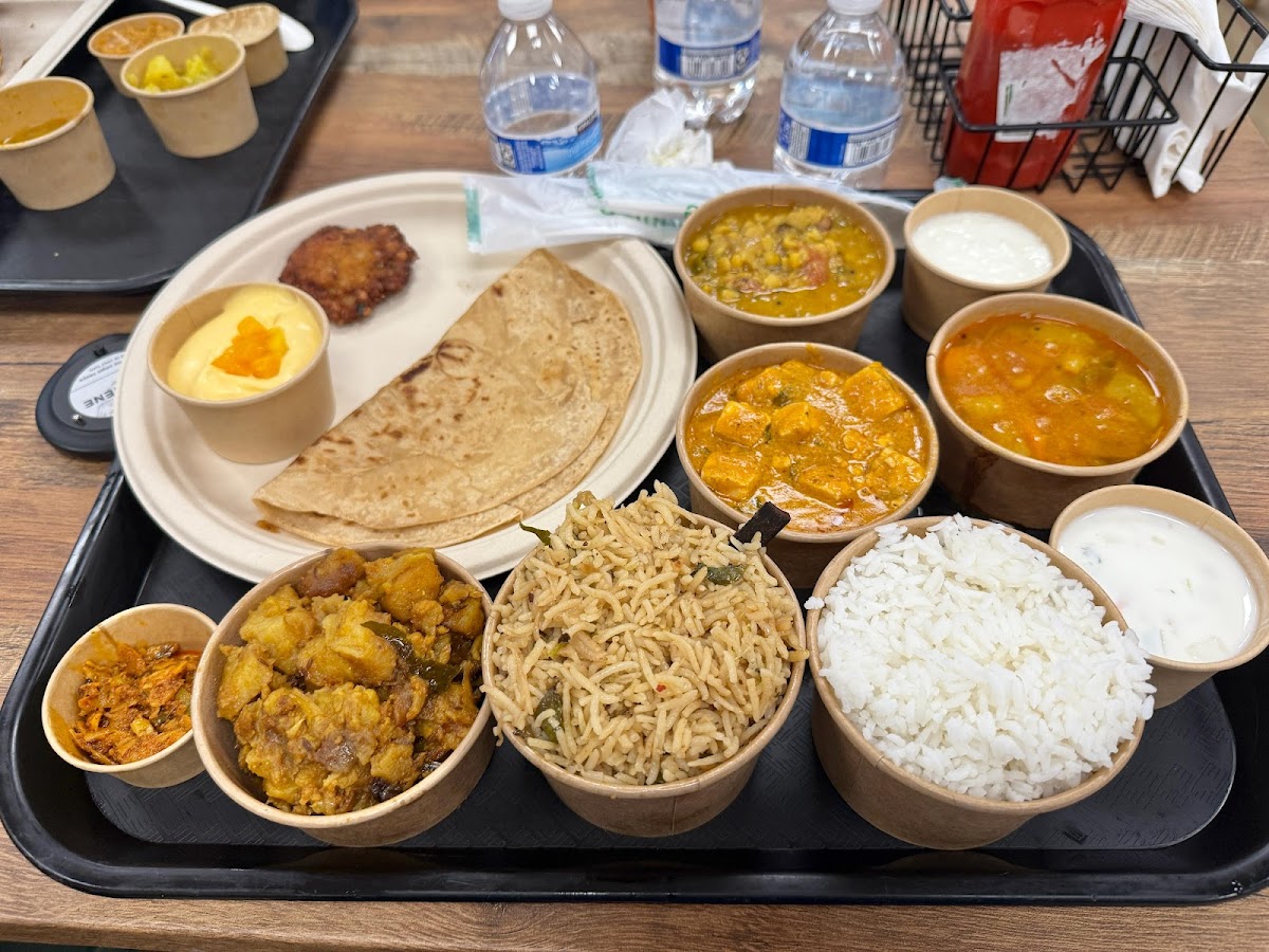Really enjoyed our meal here. The Non Veg Thali and Ravva Dosa were excellent. The place has a great ambiance and is very clean. Love the eco-friendly touch with the paper plates and cups. Will be back for sure!
