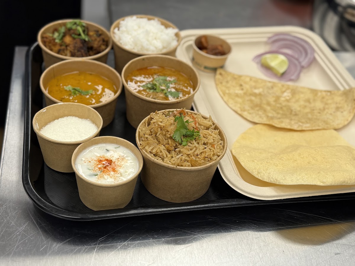 We ate dinner at the Southern Spice restaurant last week. This new restaurant had only been open for a week. The ambience was lovely with beautiful portraits, and the food was delicious, and the ingredients and flavor made it seem like it had been made at home. Dosa, chicken and veggie biryani, salan/gravy, and the dessert were all delicious. The food was served in biodegradable, eco-friendly containers along with the compostable cutlery. Our only recommendation is to have a recycling bin if you continue to provide plastic water bottles. I highly recommend this restaurant, and we will definitely be back.